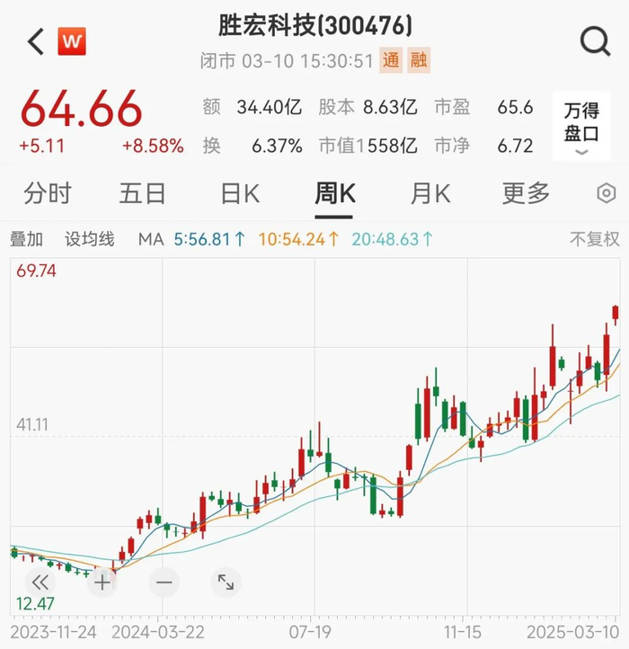 从盈利规模和业绩增长来看,电子元件行业的胜宏科技均排名第一。二级市场方面,受益于良好的业绩表现,胜宏科技近三年连续上涨,股价于3月10日创历史新高。