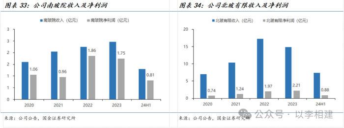 (3)北玻有限(85.94%持股)由北京二五一厂转制成立,继承北京玻璃钢研究设计院五十余年来形成的专有技术和行业影响力,专门从事交通运输、建筑工程、电子电力、航空航天等领域高品质复合材料生产。2023年北玻有限收入14.89亿元、净利润2.21亿元,24H1北玻有限收入7.36亿元、净利润0.88亿元。