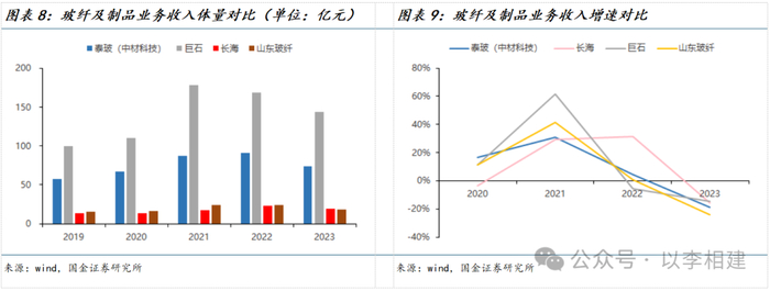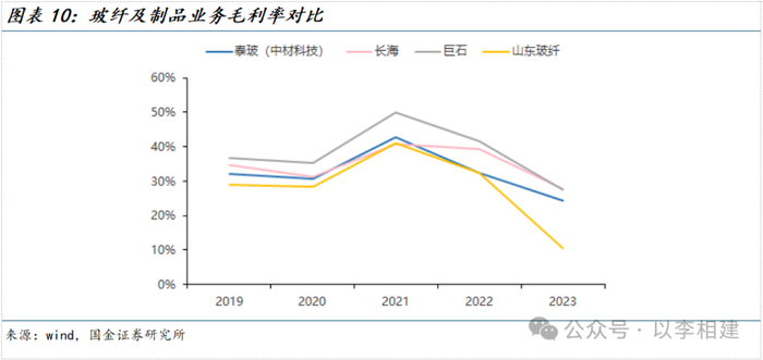 公司收入规模排名行业第二,仅次于中国巨石。2023年公司玻纤及制品业务收入达73.89亿元,约为行业第一名巨石收入的50%。