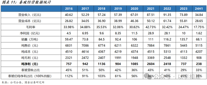 收入及利润占比角度,2023年泰玻营收占上市公司比重为29%、归母净利占比45%,24H1泰玻营收占比33%、归母净利占比35%。
