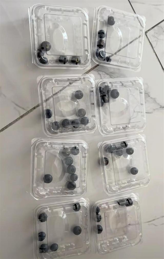 3月9日中午,辽宁一位网友发出收到的蓝莓的视频。照片中,确实有8盒蓝莓,但一盒里面仅仅有几颗,8盒总共才46颗。