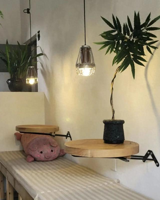 拎咖咖啡位于陈家镇的知瑶小厨餐厅院内,由一间老屋改造而成,屋内保留着原本的木梁结构,还摆放了几排独具崇明特色的土布玩偶,搭配各种绿色植物,为朴拙的环境增添了几分轻松恣意。