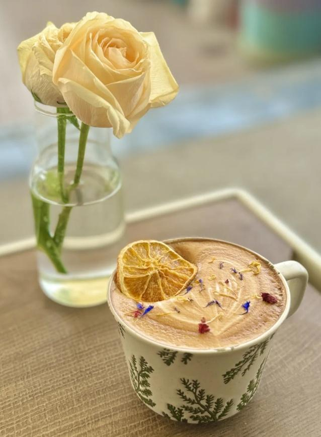 这里的橙漫山茶花咖啡很适宜当季饮用,奶泡的绵密与山茶花的清甜相得益彰,口感细腻而柔和,搭配上精致的甜点或轻食,味蕾与心灵得到双重满足。