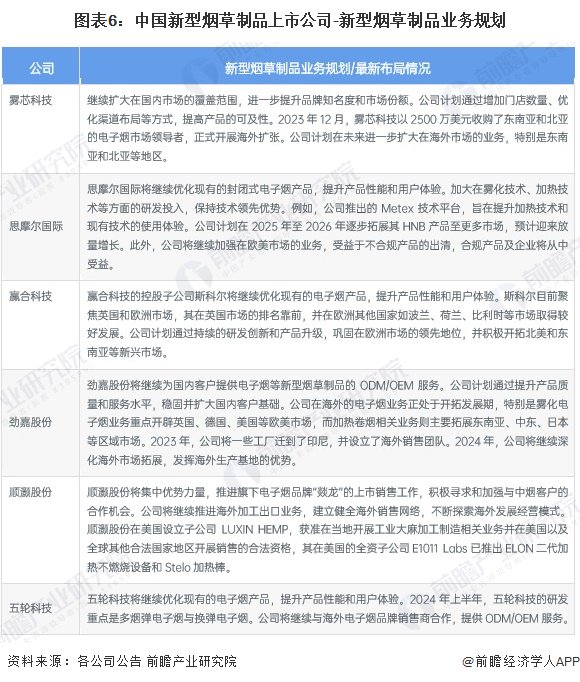 4、新型烟草制品上市企业新型烟草制品业务规划对比