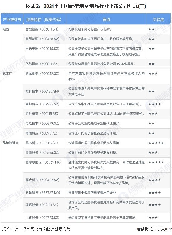 1、新型烟草制品行业上市公司汇总