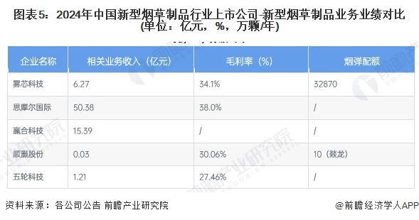目前从上市企业新型烟草制品相关产品的营收来看,2024年上半年,雾芯科技的相关业务收入约6.27亿元。从毛利率来看,上市企业的新型烟草制品业务的毛利率均处中上水平,除五轮科技外,其余上市企业的毛利率均在30%以上。