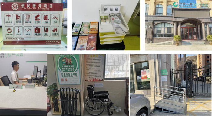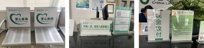 中国人寿财险河南省分公司积极融入老年友好型社会建设,目前全省营业网点已实现100%配置轮椅、便民药箱、老花镜、放大镜、爱心座椅等适老助残便民设施,统一布设“外籍人员、老年人服务窗口”中英双语桌牌和“现金收付”立牌,柜面服务人员手机均安装同声翻译软件。一楼临街网点设置了无障碍通道和服务热线提示牌。各营业网点为临柜老年人提供一对一引导和线上化操作指引,增强老年人使用金融服务的获得感和安全感。