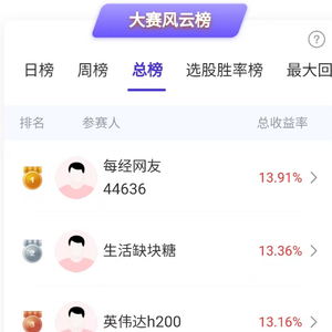 第二,如果有多位选手月度积分相同,那么在相同积分的选手中,以当月最后一期比赛的收益率进行排名。积分每月累积,会对年度积分王成绩影响较大,因此需要积极参加每期比赛。
