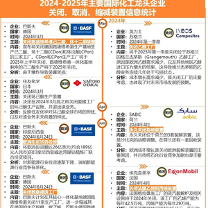 ▶▶2024年4月11日,埃克森美孚宣布关闭位于法国格拉雄翁的蒸汽裂解炉及相关衍生部门,涉及乙烯产能42.5万吨/年、丙烯产能29万吨/年。