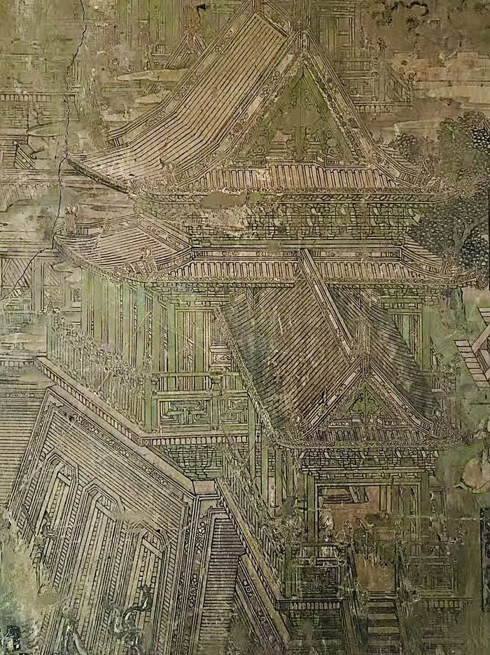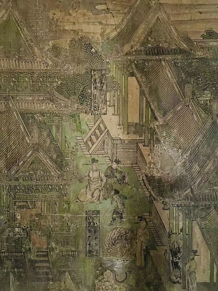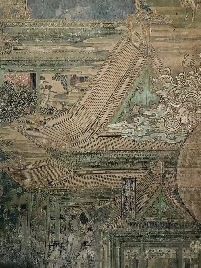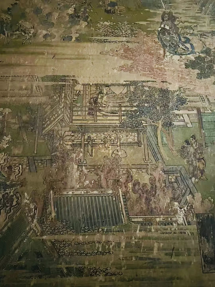 今天,我们不但能够知道岩山寺文殊殿的壁画先后历时九年并最终完成于公元1167年,还能得知画师王逵生于北宋元符三年(公元1100年,与《清明上河图》诞于同时代),原属北宋籍画师(一说可能为北宋翰林书画院画师,待考),北宋亡国后被掳至金廷服役,因其画艺精纯,遂留在少府监作“御前承应画匠”三十余载,如此阅历,使其对北宋汴梁(今开封)、金中都(今北京)两地,大至宫殿布局、建筑结构、细至市井生活、社会风貌、衣食起居、服帽穿戴了如指掌,为其晚年的岩山寺壁画创作积累了丰富详实的素材;此外,作为妥妥的公务员编制,坐享职务之便,“名家之作倍多鉴赏”,亦使得王逵能够将唐宋名画笔下的人物、山水、畜兽与北宋官式界画融会贯通。柴泽俊老先生曾称赞文殊殿壁画为:“确切地反映了北宋汴梁、金朝中都的社会风貌,在这一点上除张择端《清明上河图》所描绘的汴梁街景外,几乎再无与之媲美的作品”