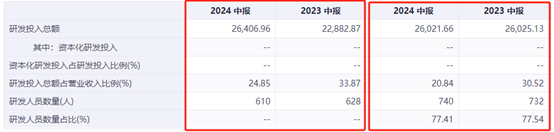 但到2024年上半年,得益于收入规模增长,同样2个多亿的研发投入,研发费用率却降到了20%+(研发投入都没有资本化),导致净利率大幅提升。