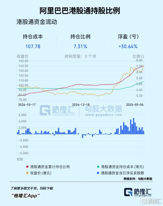 以阿里巴巴为例,去年9月入通后的三个月,公司港股通渠道净买入金额快速攀升至800亿港元,持股占比突破4.6%,目前已达到7.3%。