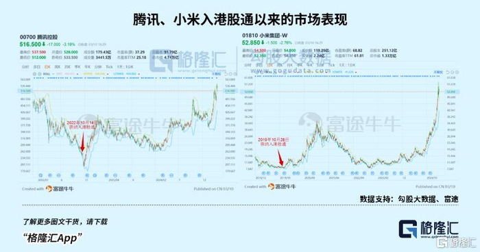 富途牛牛数据显示,腾讯入通三个月内涨幅逼近70%,至今累计涨幅超100%。而小米入通的一年时间里,股价翻涨近3倍,五年周期维度涨幅更突破5倍,印证了稀缺龙头对接本土资金后的价值重估动能。