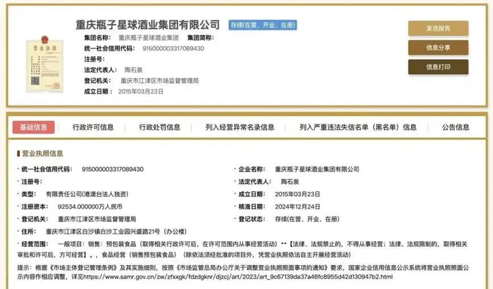 江小白的选择很特别——改名。去年年底,重庆江小白酒业有限公司正式完成工商变更,公司名称变更为重庆瓶子星球酒业集团有限公司(下称瓶子星球)。江小白创始人陶石泉由总经理、执行董事,变更为董事。