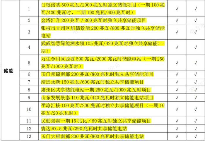 电化学储能项目14个,共2.4775GW/9.89GWh