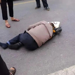 自己也将车停好后下了车,快速走到老人身边,将自己的衣服脱下来盖到老人身上,并问老人有没有什么大碍,但是老大爷并没有回应。
