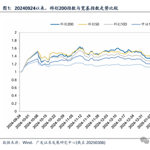 市场表现:弹性较大。2023Q2至2024年上半年,市场偏好红利板块,科创200指数表现一般,但从20240924行情以来,截至20250306,科创200指数的涨幅超过70%,高于科创50指数的68%,以及沪深300、中证1000等宽基指数同期表现。分年度收益方面,科创200指数在今年以来跑赢科创50、科创100指数。