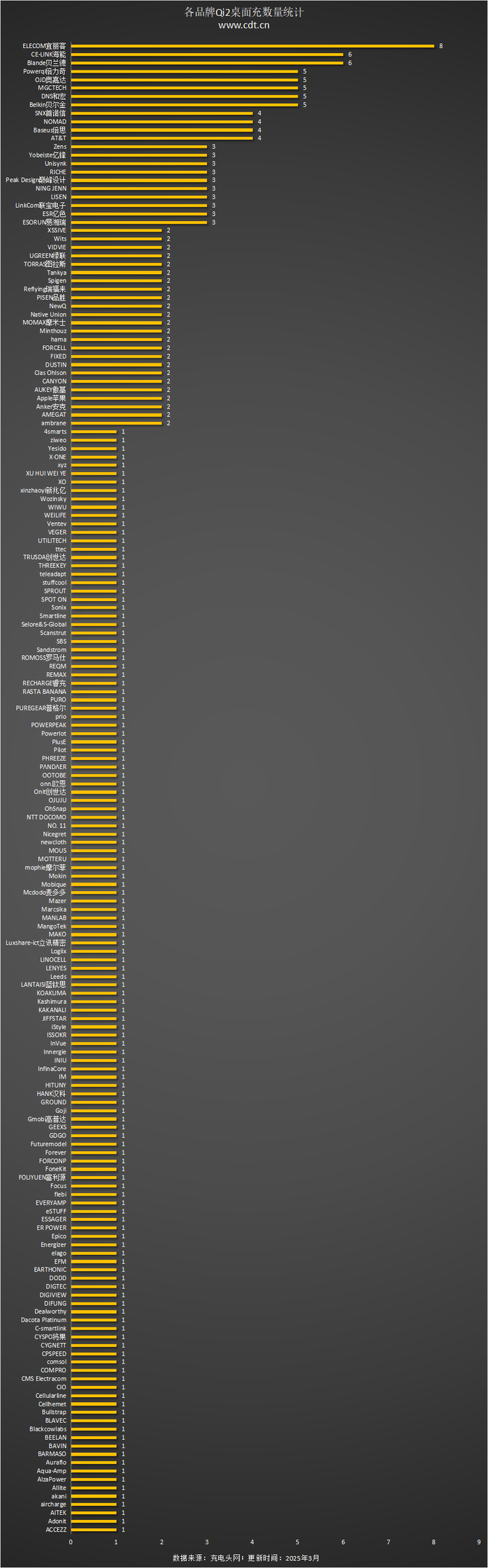 根据数据统计,通过Qi2认证桌面充数量第一是宜丽客,共8款;海能、贝兰德并列第二,各6款;倍力奇、奥嘉达、MGCTECH、和宏、贝尔金并列第三,各5款。