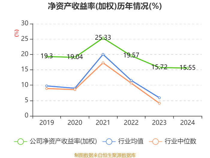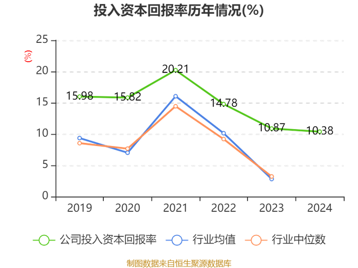 数据显示,2024年公司加权平均净资产收益率为15.55%,较上年同期下降0.17个百分点。公司2024年投入资本回报率为10.38%,较上年同期下降0.49个百分点。