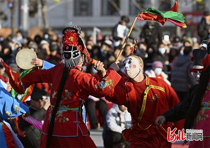 2月3日,井陉县民间艺人表演井陉拉花。