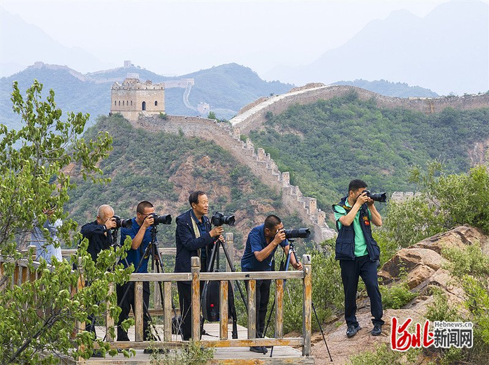 2024年6月27日,滦平县花楼沟村农民摄影师们在金山岭长城拍摄。