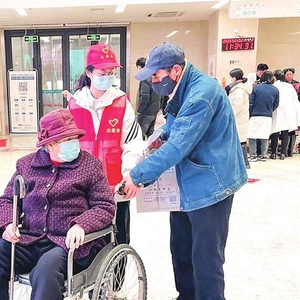 志愿者帮助行动不便的患者。兰州新区报记者姜波 摄