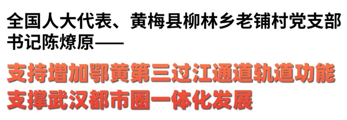 “规划武汉至黄冈市域(郊)铁路对推动光谷科创大走廊产业创新功能东延、推动武汉都市圈同城化发展具有重要意义。”陈燎原向大会提交了“关于支持增加鄂黄第三过江通道轨道功能的建议”。