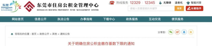 东莞市住房公积金管理中心发布《关于明确住房公积金缴存基数下限的通知》。