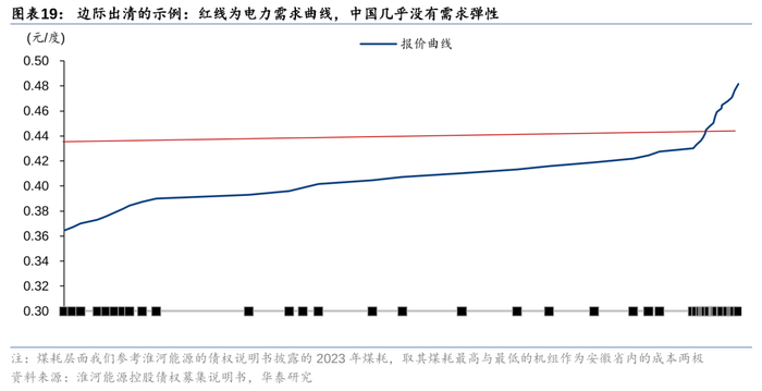 我们以安徽省火电成本为例拟合成本曲线,假设所有机组按照边际成本+5%利润率报价(大部分省份偏差5%以内不考核),从低到高排序出清;假设利用小时4300,也就是从最低到86%分位的电厂可以出清,那么对应的边际价格也=全市场出清价格=0.48元/度,相对于出清的86%的机组的平均成本0.33元/度,平均点火价差为度电5分。所以当地火电成本曲线越陡峭,新、老机组效率相差最大,火电成本曲线本身所支持的点火价差也就越大。