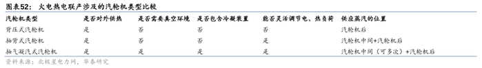 火电热电联产主要涉及背压式汽轮机(热能可得到充分利用,但不可能同时满足热负荷和电负荷变动的需要)、抽气凝汽式汽轮机(从汽轮机中间抽出部分蒸汽,优点是能在较大范围内同时满足热负荷和电负荷的需要,适用于负荷变化幅度较大,变化频繁的区域性热电厂;缺点是热经济性略差,辅机较多投资较大)和抽背式汽轮机(结合背压式与抽凝机组的功能)。