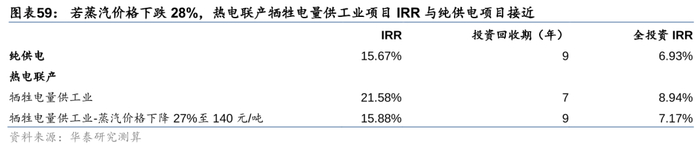 火电:牺牲电量给工业供热或将带给火电6-7pct的全投资IRR增厚