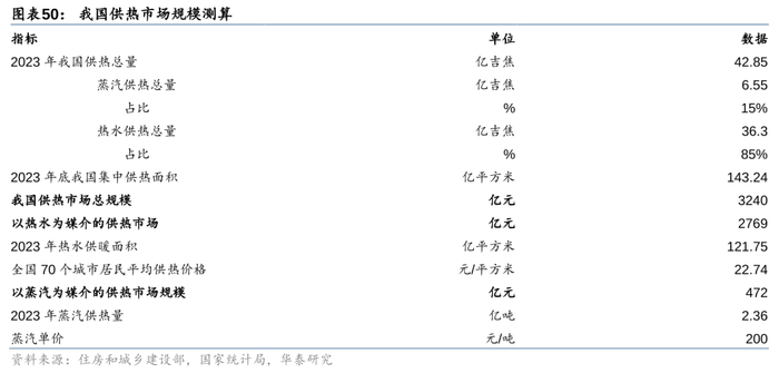 供热或成为电力公司重要的开源手段。根据我们的测算,供热会带给火电、垃圾焚烧和核电6.9/2.1/2.0pct的全投资IRR增厚。2023年我国供热市场规模或达3240亿元,其中工业供热市场规模472亿。据我们测算除我国少数北方地区以外,热电联产+IDC具备经济性;我们预测2025年我国IDC用电量3847亿度,若PUE为1.5,制冷需求中20%由余热制冷满足,可以增加2023年蒸汽供应量的32%。