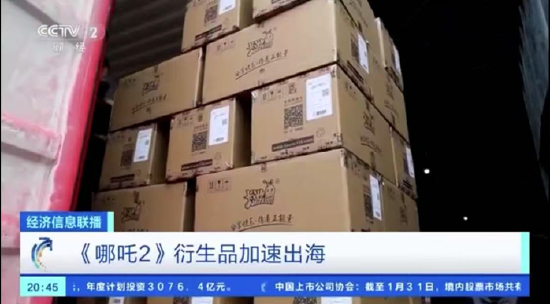 2月27日,央视财经频道《第一时间》的《提前布局激活市场 产业链联动踩上“风火轮”》报道中提到,不少企业在电影上映前就购买了IP版权,将衍生品开发前置,实现了电影上映,衍生品同步面世。