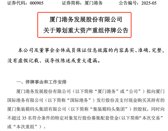 厦门港务发布的《关于筹划重大资产重组停牌公告》披露: