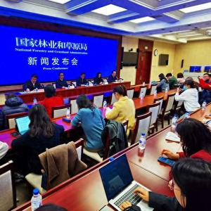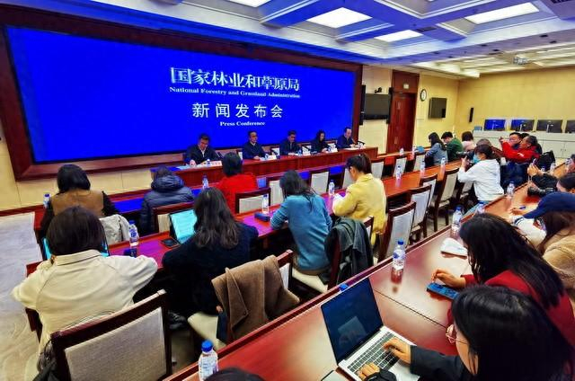 3月12日,国家林草局新闻发布会现场。摄影/章轲