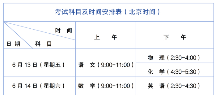 6月:语文、数学、英语、物理和化学等5科统一考试(中考)时间为6月13和14日