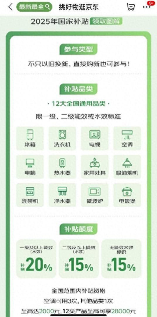 全国范围内每位符合补贴条件的用户空调品类商品最多可享受3次补贴,其余品类商品每类仅可享受1件商品的补贴,每件活动商品补贴不超过2000元。十二大类家电,至高可省28000元。