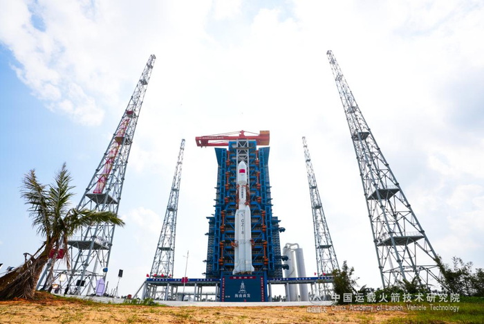长征八号遥六运载火箭在在海南商业航天发射场一号工位静待发射。图据中国运载火箭技术研究院