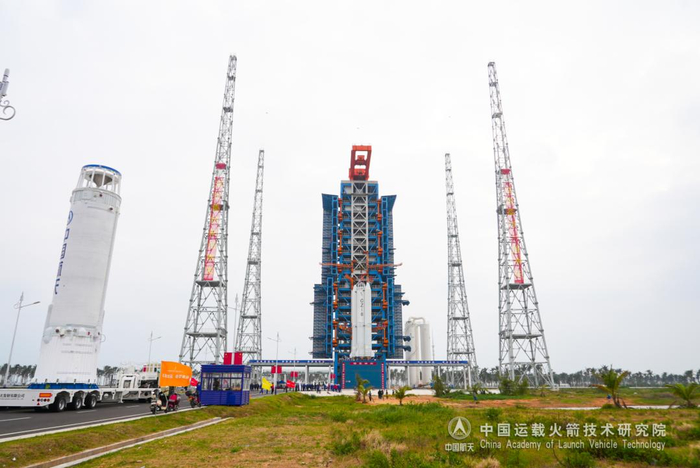 长八火箭团队将箭体分段垂直转运至发射区后完成总装。图据中国运载火箭技术研究院