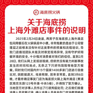 3月6日,针对网传顾客朝海底捞锅底小便视频,海底捞回复:就此视频片段,我们已向多地公安机关报案,全力配合相关部门溯源追查,无论是否摆拍,都将依法坚决追究涉事人员法律责任。