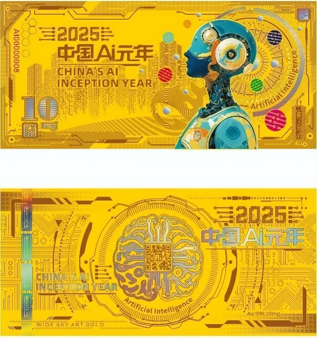 作为全球首款以人工智能AI为主题的贵金属收藏品,《中国AI元年》金券由中国首家收藏连锁机构广天藏品发行,中国顶尖人工智能AI参与设计的创世之作,采用“柔性黄金”工艺将10mg 999足金制成可弯折的科技艺术品。钞券级3D彩印、炫彩工艺浓缩了中国AI逆袭的史诗,背面紫光灯下更隐藏“中国AI元年·2025”字样,永久铭刻着中国AI创新突破的时间节点,也是留给未来百年的时光胶囊。这件全球首款AI藏品将以128元首发价限量发行,首发当日现场抢购仅需98元!这一价格不仅远低于市场预期,更以亲民姿态让更多人见证中国AI里程碑时刻!此外,《中国AI元年》金券四连体也将以神秘惊喜价现场首发,敬请关注。