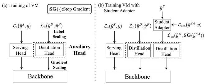 图 5:(a)辅助头(Auxiliary Head)(b)学生适配器(Student Adapter)