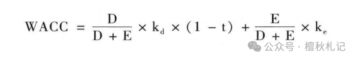 其中E表示普通股市值,V表示总市值(E + D),(Ke)表示普通股的成本(即股东要求的收益率),D表示债务市值,(Kd)表示债务的成本(即借款利率),t表示税率。