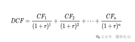 那我首先手把手来教下如何计算DCF吧,我们可以简单地把股权资产当做一个债券,分子就是未来每期现金流就是每期的利息、到期的本金,对于企业股权资产,即股权资产每期所产生的现金流。而分母,就是资产或者债券的折现率。所谓折现率,他其实主要包含两层含义,一个是时间价值,另一个是风险补偿。因为投资者一旦用现金购买一个资产,即资产的时间价值就会逐步减弱,这是因为你要付出机会成本以及现金对应远期的购买力是下降的。同时,投资者购买的资产还要面临未来的不确定性,这就要求资产回报有一定的风险补偿。