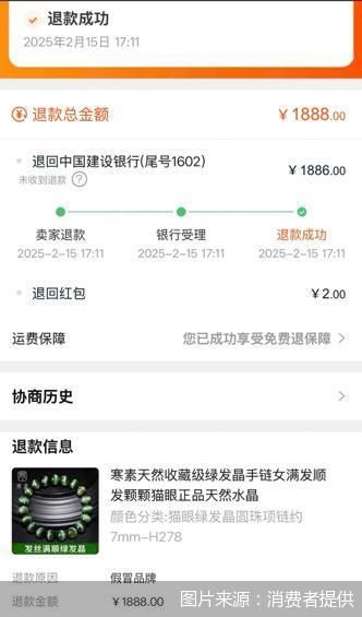 李洪江认为,根据《中华人民共和国民法典》第577条规定,商家交付的商品与在先约定严重不符的,例如矿物种类差异,消费者有权解除合同并索赔。另外,如果商品详情页明确标注“绿发晶”,实际发货为廉价水晶(如染色石英),商家则涉嫌构成“商品与实际信息不符”的虚假宣传行为。