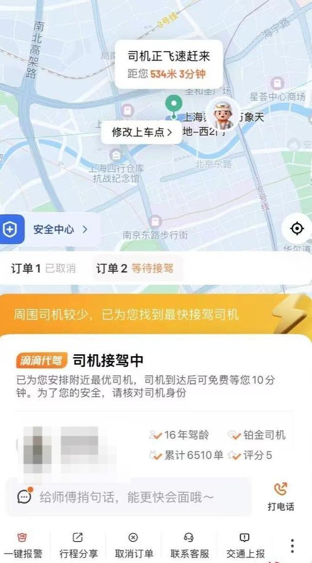 姜先生告诉红星新闻,3月8日晚上,滴滴出行App弹窗提醒他,有一笔代驾订单正在进行,司机正在赶往乘客所在地。姜先生立即取消了这笔订单,并拨打了订单上的乘客电话,对方称自己是在闲鱼上找的“代下单”。随后,姜先生发现,就在此单之前,他的账户还曾呼叫过一次代驾,起点与此单相同,但已显示取消。