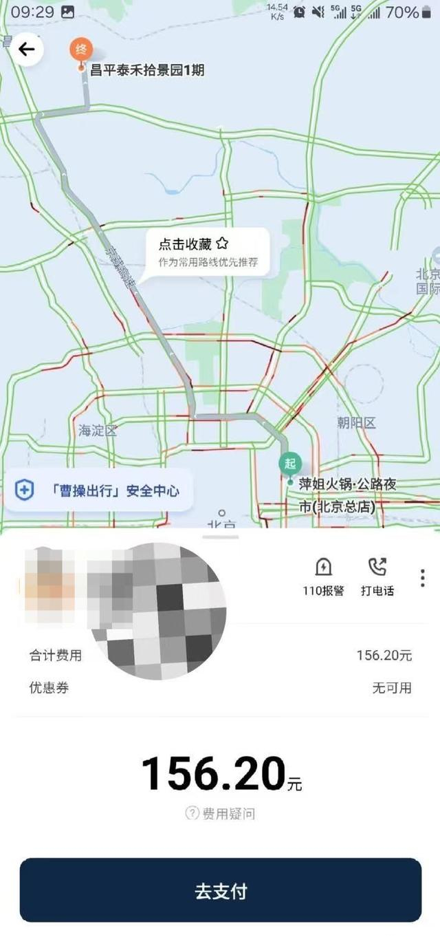 3月10日,陈女士告诉红星新闻,3月2日早晨醒来时,她发现自己的滴滴出行账号,莫名出现了一个待支付156.20元的快车订单,订单时间为3月1日凌晨。陈女士在社交媒体发出的订单截图显示,这辆车从北京一火锅店开往北京一小区。