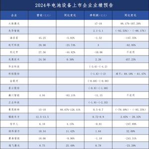 近期,多家锂电设备上市企业发布了2024年业绩预告和快报,广东省电池行业协会秘书处对18家设备企业发布的业绩情况进行梳理统计。