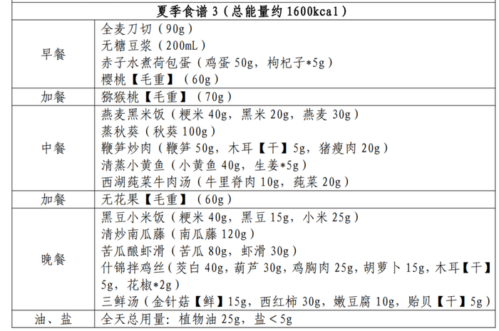 苏州市卫健委发布健康减肥食谱