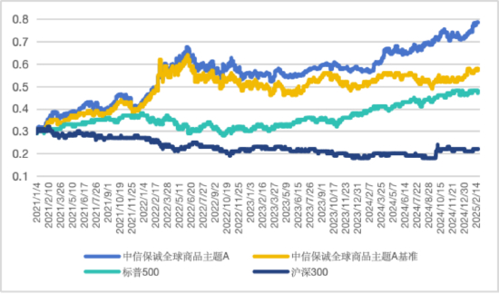 注:中信保诚全球商品主题(QDII-FOF-LOF),2011/12/20成立,业绩比较基准为标准普尔高盛商品总收益指数。2020年-2024年业绩/基准业绩:-30.02%/-23.72%,43.24%/40.35%,32.31%/25.99,3.92%/-4.27%,22.85%/9.25%。2024/3/15设立C份额(020969),成立日至2024年末业绩/基准业绩15.87%/0.68%。历任及现任基金经理:刘儒明(20130115-20190125)、李舒禾(20111220-20190426)、顾凡丁(20190418-至今)。基金管理人对以上基金的风险等级评级为R4。